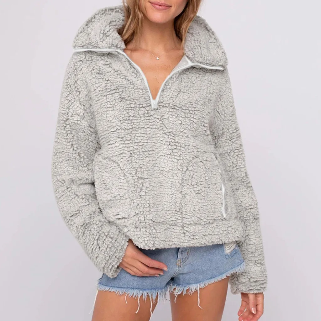 Hoodies Women Autumn 2019 Solid Zipper stand neck furry Harajuku Streetwear Hoodie Hoodies And Sweatshirts Women Pullovers
