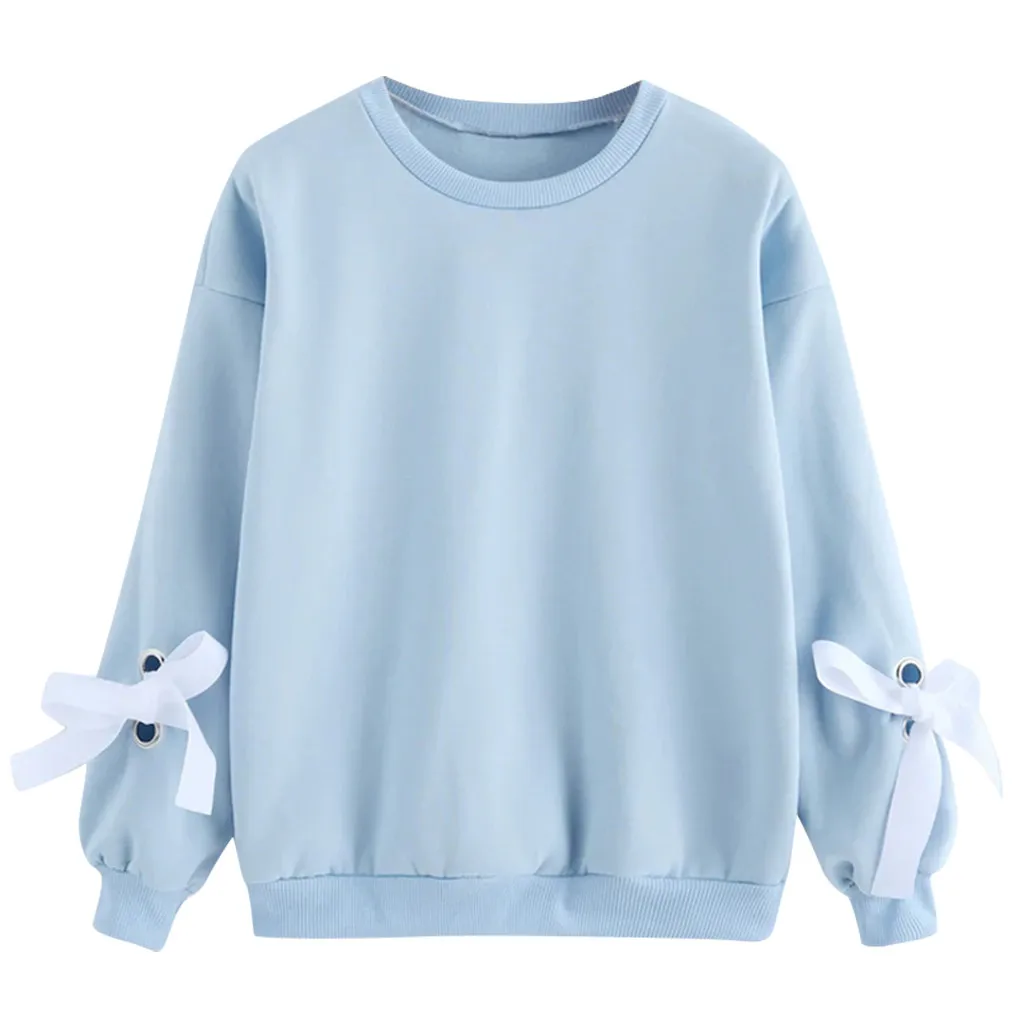 Hoodies Women Autumn 2019 Solid bowknot o-neck Harajuku Streetwear Hoodie Hoodies And Sweatshirts Women Pullovers Clothes